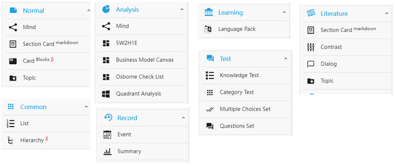 随着对效率、易用性的需求,Lore 在 JSON 编辑器和模板的概念之后,逐步引入了 JSON 的可视化模板、思维导图、答题、分析框架等内容形式。