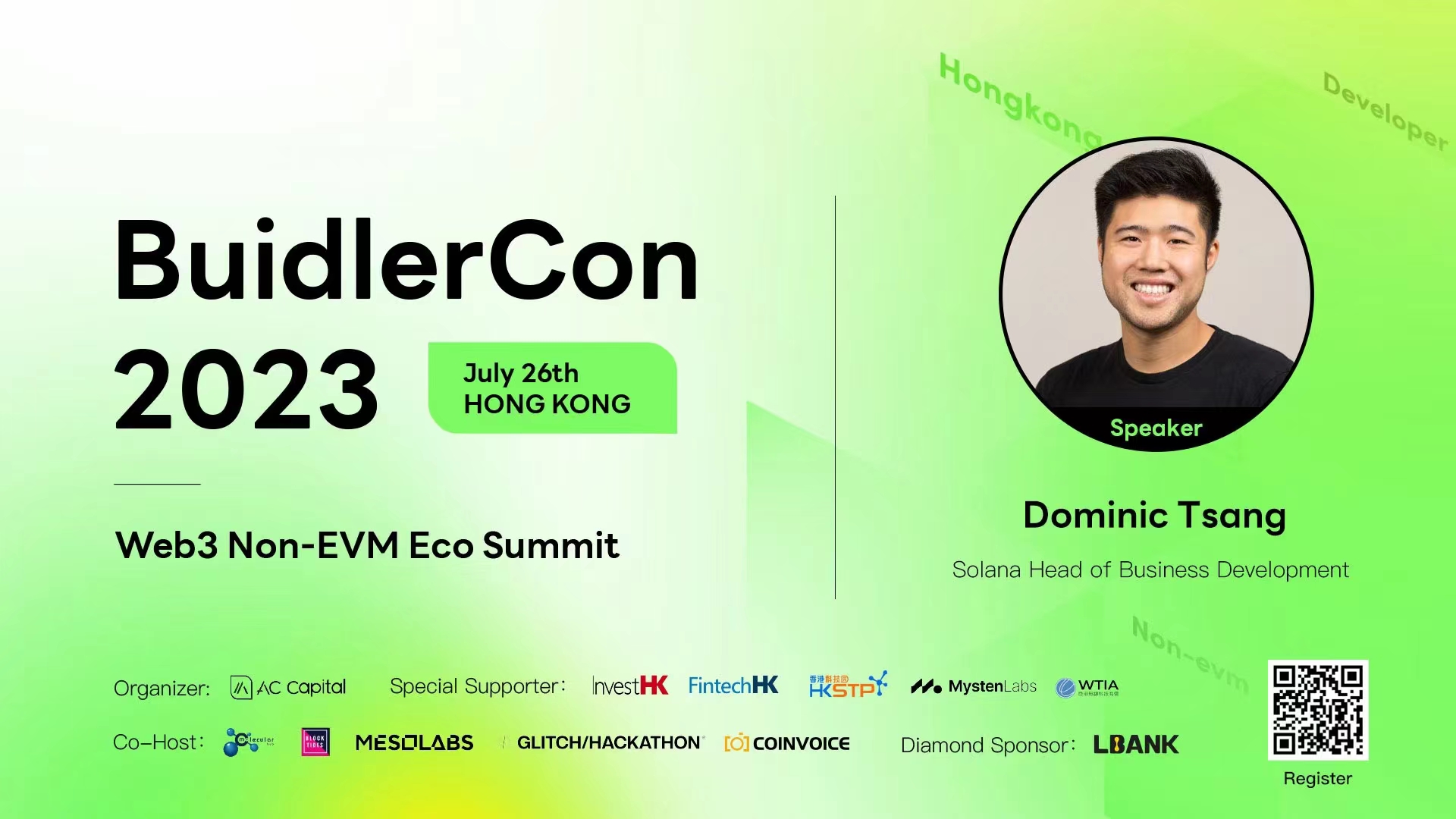Solana业务发展部主管Dominic Tsang确认出席 BuidlerCon2023